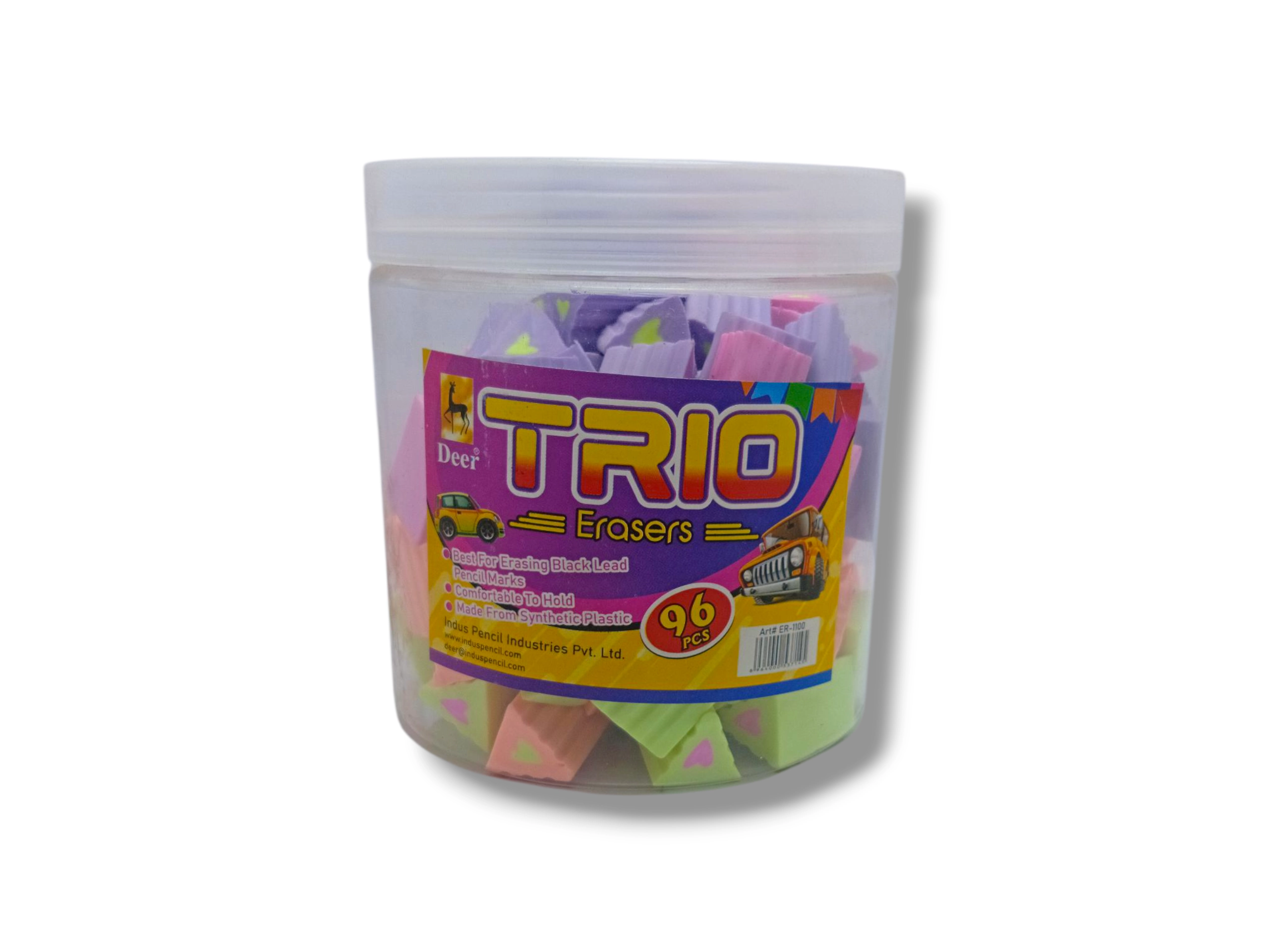 The Deer Trio Eraser 1100 is designed for precision erasing without damaging your paper. Its soft texture ensures clean and effortless correction, making it the perfect choice for students, artists, and office professionals. Crafted with non-toxic materials, this eraser is safe, durable, and reliable for everyday use.