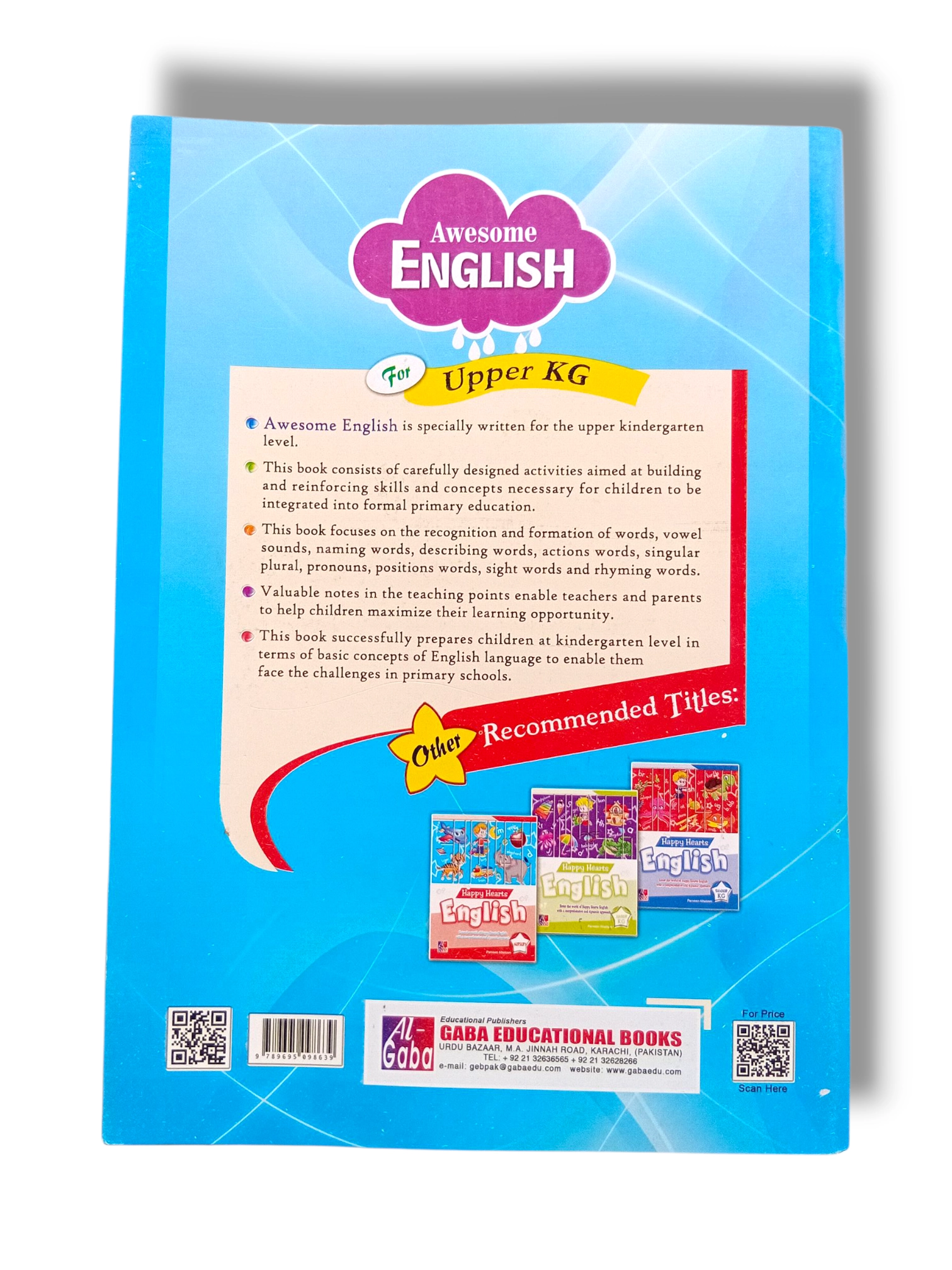 Gaba Awesome English Upper KG helps children transition from basic alphabet and phonics to confident reading and writing. By combining interactive exercises with visual learning, it develops literacy, comprehension, and critical thinking skills. Early exposure to structured English activities ensures children gain a strong foundation for primary school English.